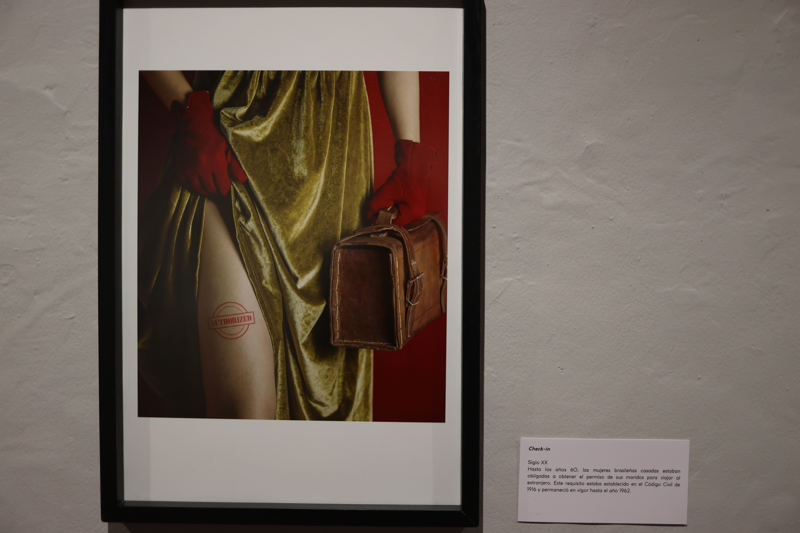 También está la imagen ‘Check-In’, que alude a una exigencia del Código Civil que rigió en Brasil entre 1916 y 1962, por la que las mujeres casadas debían tener permiso de sus maridos para viajar al exterior.